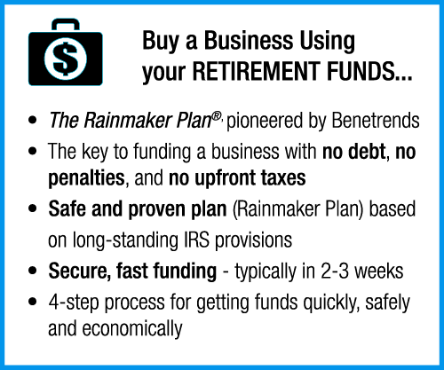 Securing funding is vital when buying a franchise or starting a business. With over 40 years of experience, Benetrends has been assisting entrepreneurs through their comprehensive suite of innovative funding solutions. Their popular programs include the Rainmaker Plan® (IRA/Rollover) and SBA small business loan programs.